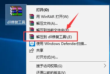 1.选中下载的【dll修复工具】软件压缩包,鼠标右击选择【解压到dll修复工具】。