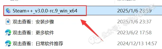 2.打开解压后的文件夹,双击运行【Steam++】程序。